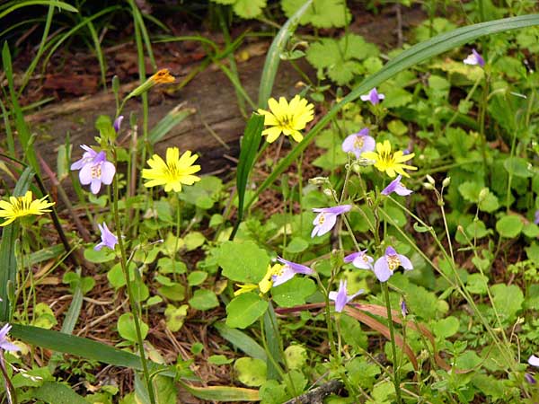 | ● 現在つぼみの写真は開花と共に更新します。もし、名前が違っている場合にはお知らせ下さい。 | ● 人間がでたらめに開発しなければ、こんなにたくさんの花が狭い範囲にもあるのです。自然の恵みに感謝。 | ||